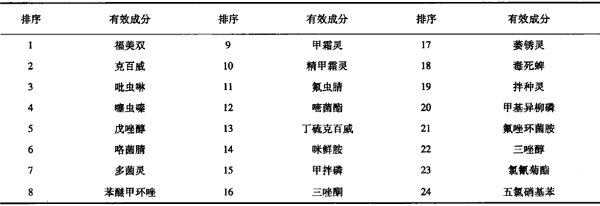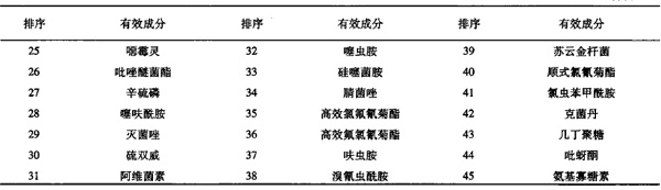 表1 现有登记种子处理剂涉及的有效成分(按产品数量排序)