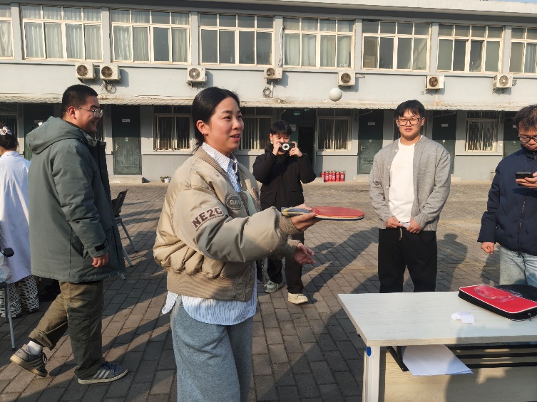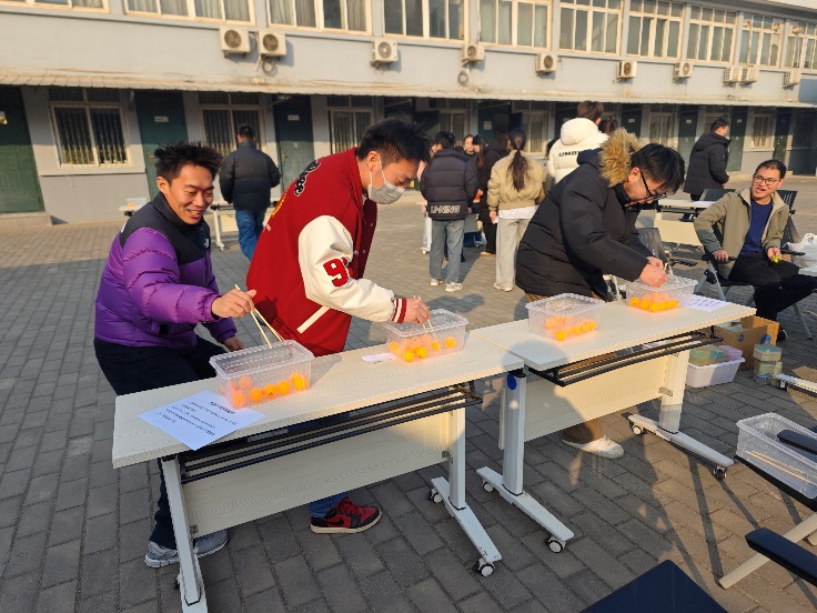 活动筹备阶段,研究生班于12月27日完成了沙包、乒乓球等各类道具及奖品的采购工作,为活动顺利开展筑牢基础。当日下午3点,参与人员齐聚中心院子,随着活动启动,6个趣味十足的游园项目同步开放,现场气氛迅速升温。颠球、夹乒乓球考验着大家的平衡感与专注力,选手们屏气凝神,争分夺秒刷新成绩;投壶项目里,大家屏气瞄准、稳步投掷,感受传统游戏的独特魅力;抢椅子、眼疾手快项目则充满竞技乐趣,参与者反应敏捷、动作迅速,引得围观者阵阵喝彩;而结合科研场景设计的插枪头大赛,让大家在游戏中展现专业技能,妙趣横生。