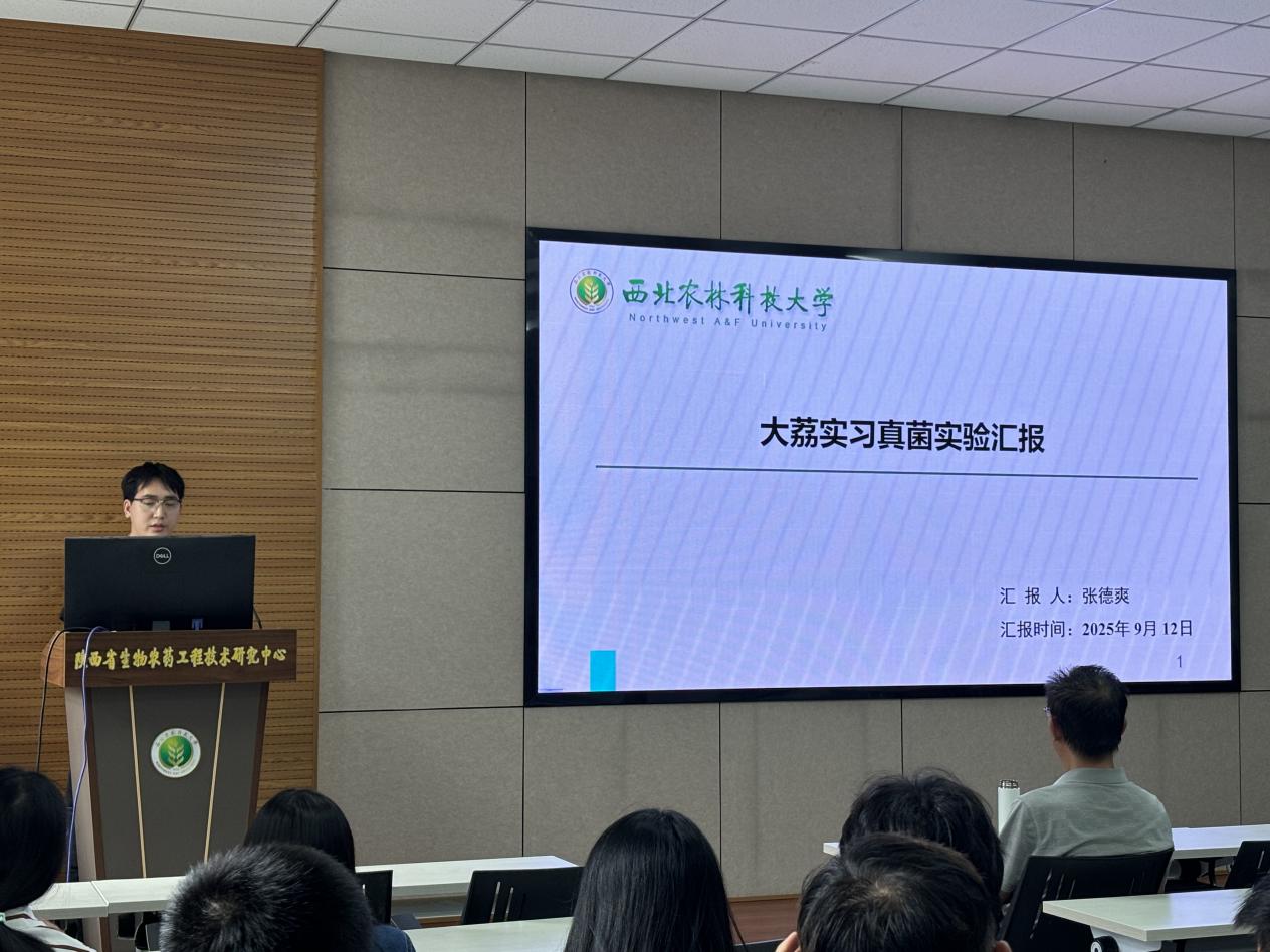 2025年9月12日,陕西省生物农药工程技术研究中心在多媒体会议室成功举办2025级新生暑期实习工作总结汇报会(大荔分队)。冯俊涛老师、王康老师、张斌老师以及全体研究生参加了此次大会,会议由研究生班学习委员梁咏欣主持,现场氛围热烈而专注。