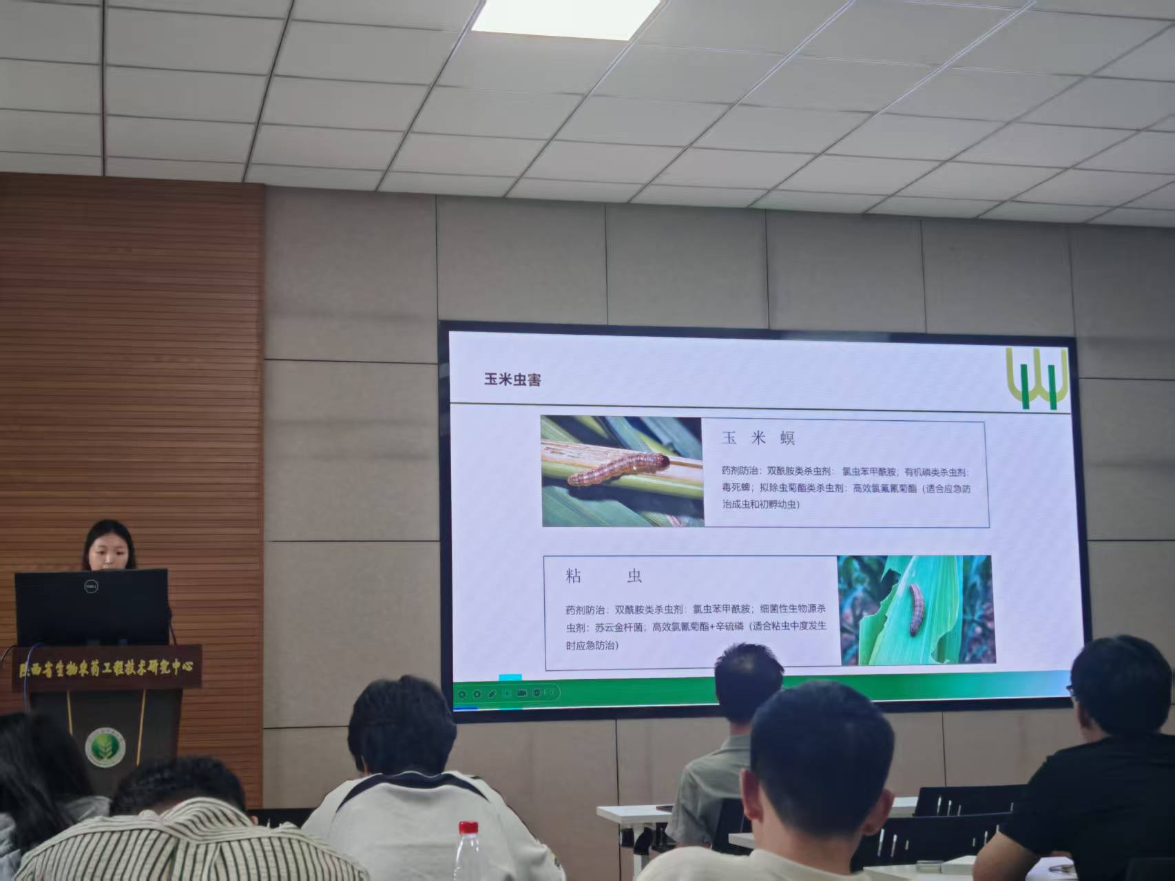 随后,冯思雨同学汇报了其小组在辣椒、玉米、核桃等作物上的调查及实验结果,试验设计合理,数据详实。最后,张静雅同学就玉米主要病虫害调查、渭北农资市场调研等结果进行了汇报,逻辑清晰,感触深刻,赢得了在场师生的广泛赞誉。