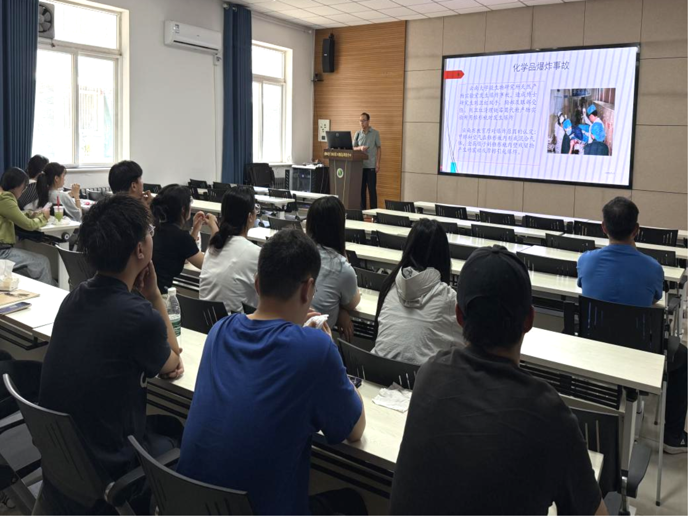 培训会上,李文奎老师系统讲解了实验室安全管理制度、常见安全隐患排查、紧急情况处置等内容,并结合典型案例进行了深入浅出的分析。参训学生认真聆听,现场学习氛围浓厚。