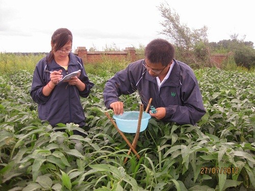 2012年7月25日早上7点,陕西省生物农药工程技术研究中心暑期实习黑龙江分队,由队长胡代花带领三名研一新生顺利抵达哈尔滨实习基地。安排好住宿后,实习分队便在黑龙江省农业科学院植物保护研究所生物防治研究室老师的热情帮助下到试验田进行实地考察,随后试验便如火如荼的进行。主要包括诱捕盆、铁丝、三角架、三角板等试验材料的准备及诱芯的配置。截至25日下午17时,已完成了搭架、置盆、固定盆、加水等一系列工作。