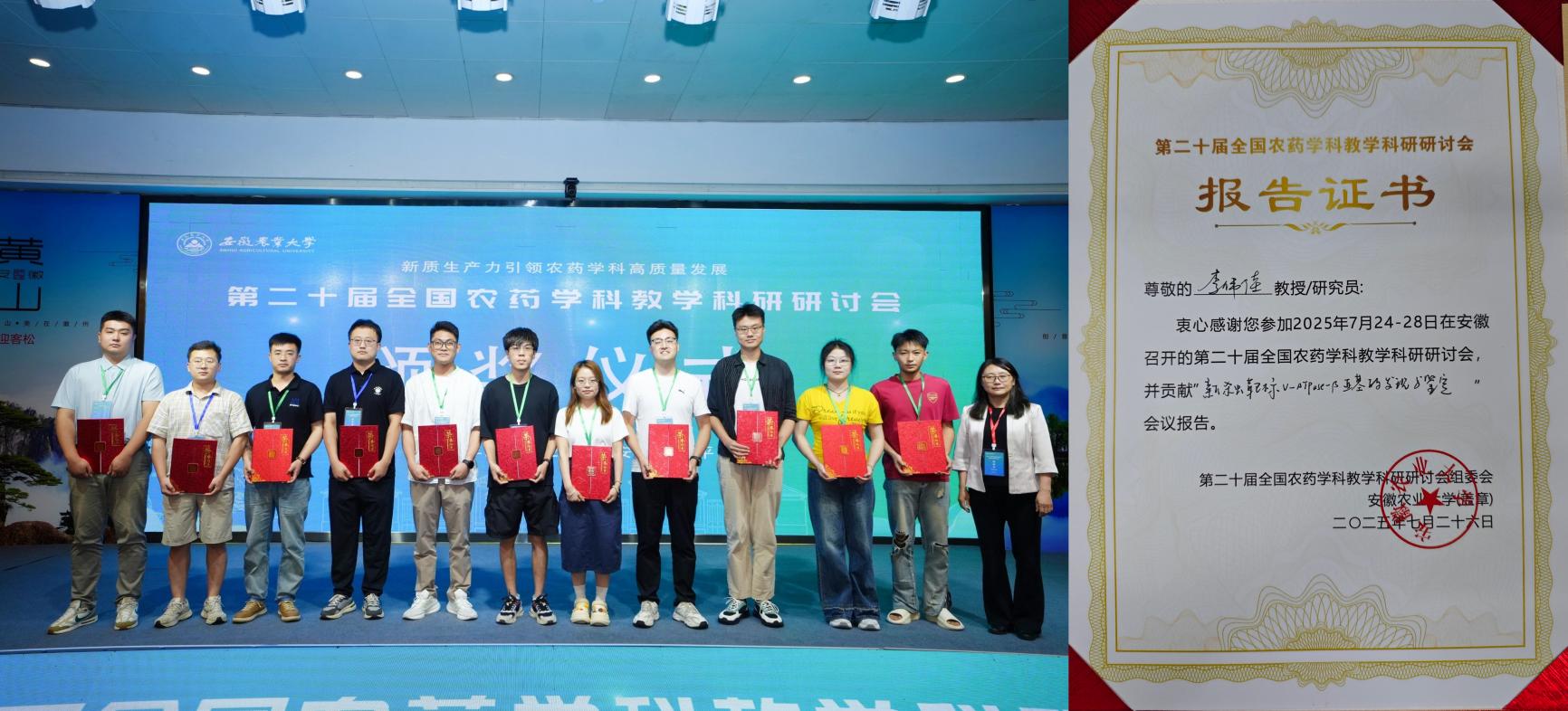 “中心”共24名师生参加本次会议。其中马志卿、冯俊涛、高艳清、张斌老师;任兴玉博士后;以及李伟佳、乔永辉博士研究生分别在教学、农药毒理与抗药性-杀菌剂、农药活性分子设计与合成、青年学者分会场作会议报告。李伟佳博士研究生获“第二十届全国农药学科教学科研研讨会优秀报告”荣誉。