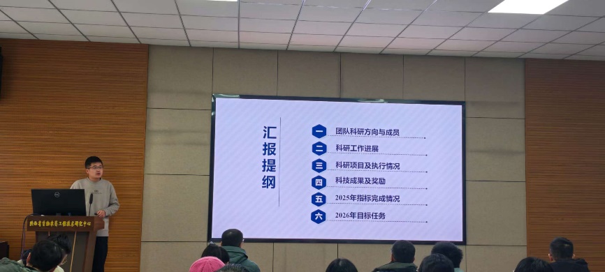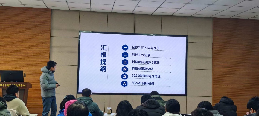 在课题组汇报环节,闫合、陈光友、王康、任兴玉、张斌、雷鹏等老师分别代表其所在团队就过去一年的研究进展进行了系统总结。随后,科研部吴华老师对全年科研工作进行了整体梳理与点评。吴华老师在肯定成绩的同时,也指出了当前工作中存在的不足,并强调未来需在以下方面加强:一是研究工作应更加聚焦,确保项目的连续性与系统性;二是加强课题组内部与跨课题组协作,避免“单打独斗”,充分利用平台资源;三是着力提升科研工作的创新性与原创性;四是积极推进成果转化,实现从应用基础研究向应用研究的跨越。