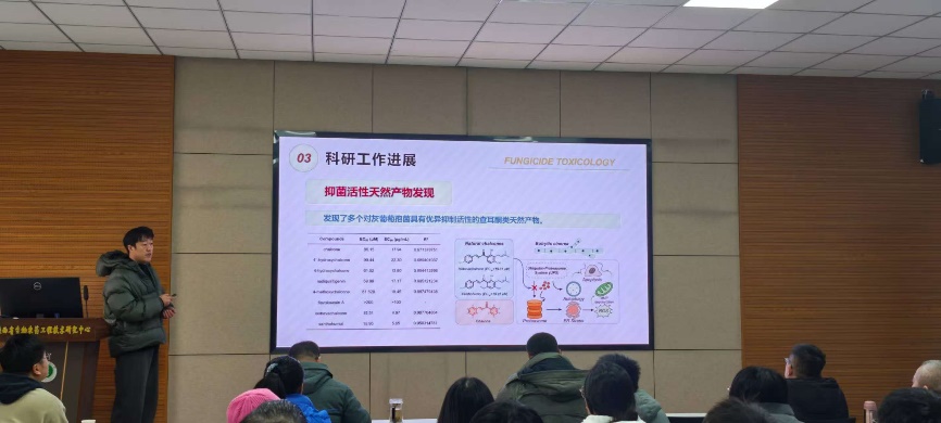 会议由中心统一组织,各课题组及研究生代表依次进行汇报。会议内容涵盖农药活性天然产物、制剂加工与应用、杀虫剂与杀菌剂毒理学、生物资源利用与生物合成、绿色农药发现与合成等多个研究方向,全面展示了中心在生物农药领域的科研布局与阶段性成果。