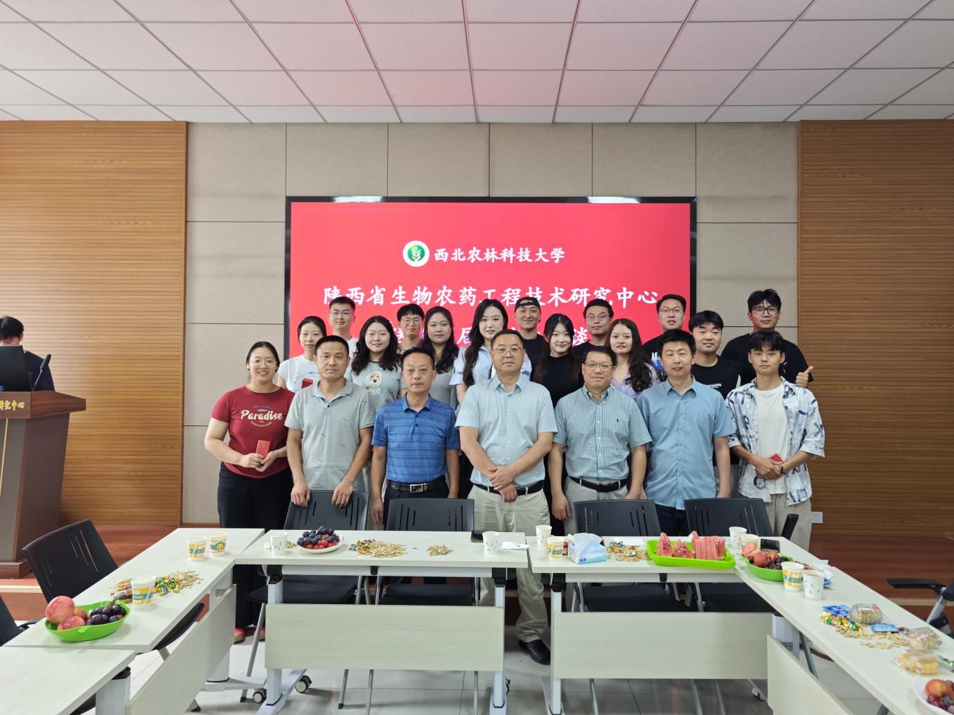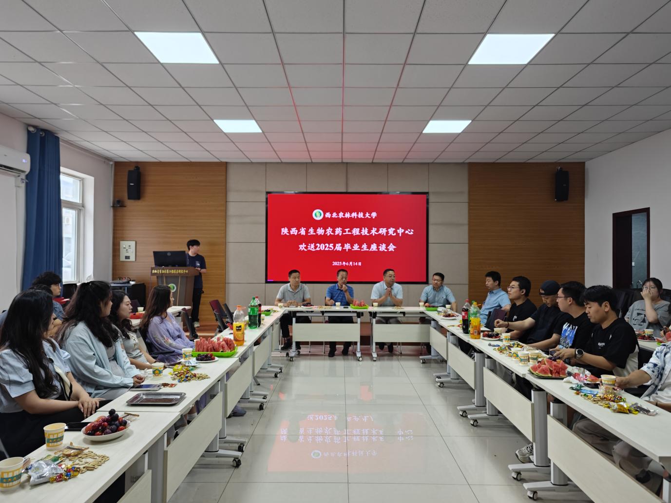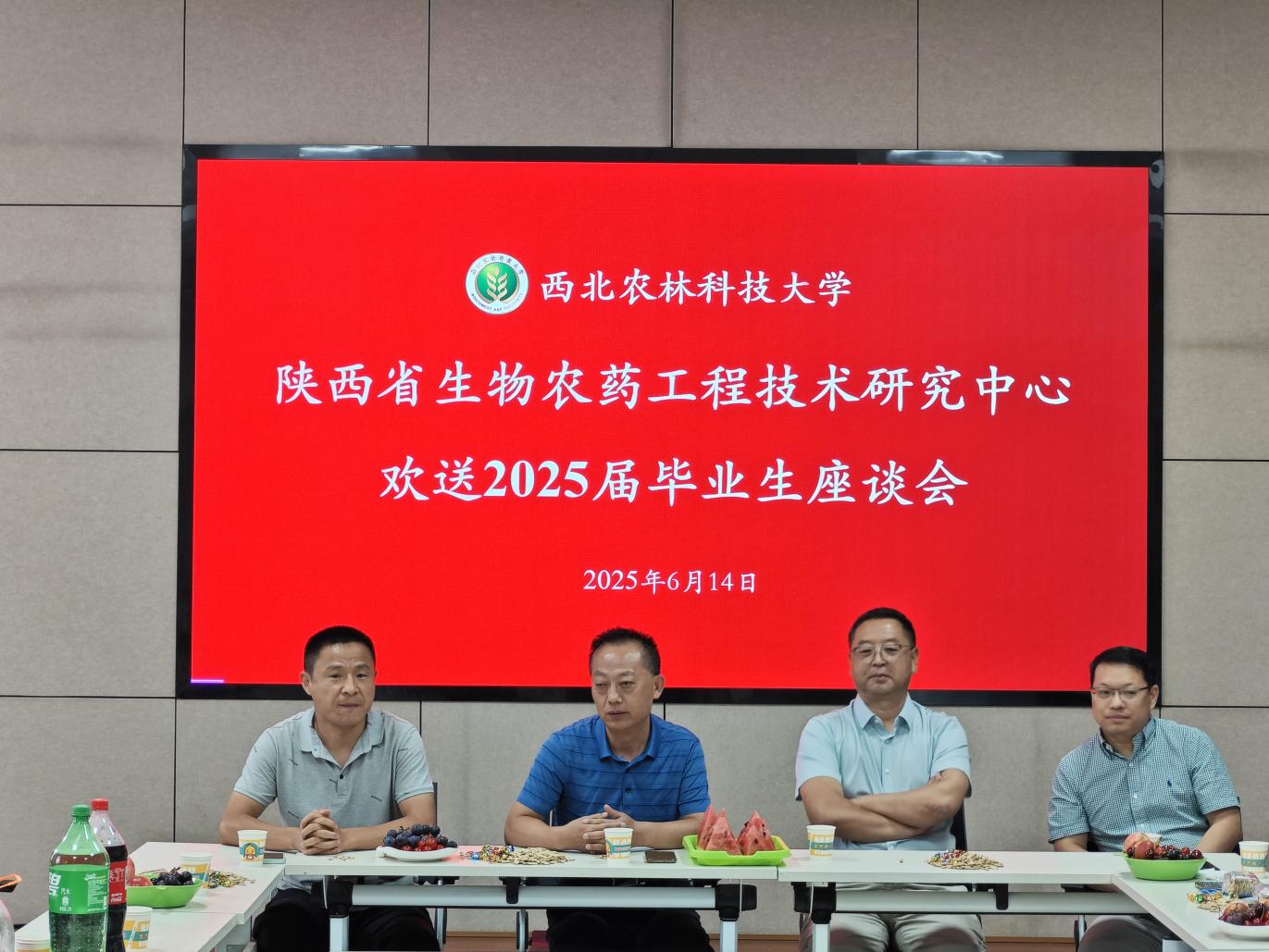 6 月 14 日上午,陕西省生物农药工程技术研究中心欢送2025 届毕业生座谈会在学术报告厅隆重召开。中心教职工与2025届毕业生齐聚一堂,共同见证这一温馨时刻。本次活动由 2024 级研究生班精心策划筹备,硕士研究生高超凡担纲主持。