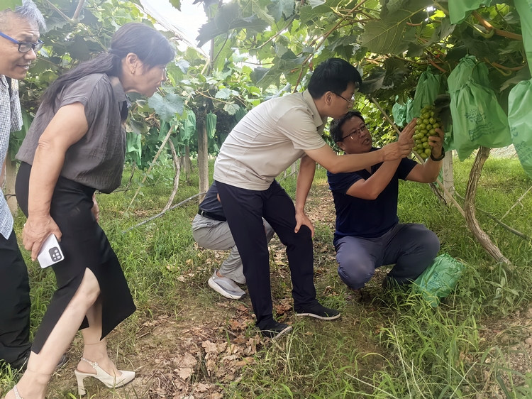 随后,调研组实地考察了农场养殖区及阳光玫瑰葡萄、桃、樱桃等种植园区。李刚主任对农场在科技赋能农业转型中的实践成效给予肯定,并就深化校地合作提出建议:一是依托秦创原平台,推动生物农药、土壤改良等科研成果在澄城规模化转化;二是探索“科技小院+家庭农场”联动模式,构建覆盖全产业链的技术服务体系;三是加强人才共育,通过技术培训、联合攻关等方式提升本土农业创新力。